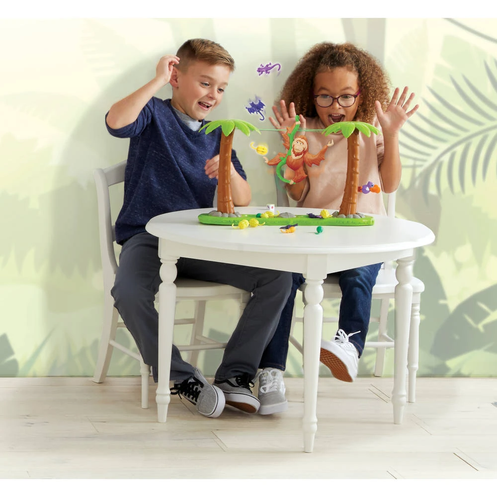 Louis Liaan is een behendigheidsspel waarbij spelers om beurten een stuk fruit of oerwoudvriendje aan de orang-oetan hangen. Gooi om beurten de dobbelsteen om te zien wat hij nog meer mee moet nemen en hang het juiste fruit of diertje aan z’n armen, benen of staart. Maar pas op! Zorg dat Louis in evenwicht blijft of… het fruit en de oerwoudvriendjes vliegen in het rond! De laatste speler die iets aan Louis hing zonder hem alles weg te doen slingeren, wint het spel.